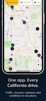ابقَ على اطلاع دائم بفضل الإشعارات الفورية عن إغلاقات المسارات والطرق السريعة في جميع أنحاء كاليفورنيا، سواء كانت إغلاقات جزئية أو كلية، وتحديثات مستمرة من مصادر Caltrans الرسمية لتجنب التأخيرات الكبرى والتحويلات غير المتوقعة. وللسائقين المتجهين إلى المناطق الجبلية مثل تاهو وماموث وبيج بير ويوسيميتي، يوفر التطبيق تنبيهات دقيقة حول قيود سلاسل الإطارات (R1, R2, R3) خلال العواصف الشتوية، موضحًا المستويات المطلوبة بدقة لتضمن جهوزيتك. بالإضافة إلى ذلك، يمكنك مشاهدة مئات الكاميرات المرورية المباشرة على جوانب الطرق في الولاية، مما يتيح لك التحقق من الطقس ومستوى الرؤية وظروف الطرق ومستويات الثلوج في لحظتها.