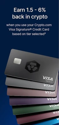 تقدم Crypto.com تجربة مالية متكاملة تجمع بين سهولة الوصول إلى الأصول الرقمية والمزايا المصرفية المتطورة. للاستمتاع بالمكافآت الأكبر، بطاقة Crypto.com Visa Signature® Credit Card تمنحك استردادًا يصل إلى 3.5% على مشترياتك، مع العلم أن عروض البطاقات الائتمانية تخضع للموافقة الائتمانية. من المهم الإشارة إلى أن توفر المزايا والشروط يخضع للمتطلبات القانونية والقيود القضائية الخاصة بمنطقتك، ويمكنك دائمًا الرجوع إلى موقع Crypto.com للحصول على التفاصيل الكاملة. بينما تُقدم Crypto.com حلولًا مالية مبتكرة، من الضروري التنويه إلى أنها ليست بنكًا، وأن الخدمات المصرفية تُقدم بواسطة Green Dot، العضو في FDIC، وأن حسابات بطاقات Crypto.com Visa Signature® Credit Card يتم إصدارها بواسطة Comenity Capital Bank. تُذكر دائمًا بأن جميع أشكال التداول تحمل مخاطر، بما في ذلك احتمالية خسارة رأس المال المستثمر بالكامل.