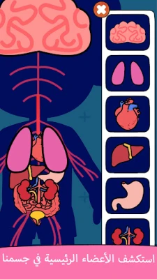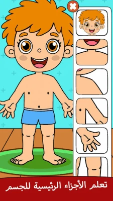 مرحباً بك في رحلة استكشاف مدهشة لجسم الإنسان، صُممت خصيصاً ليخوضها صغارنا بفضول واهتمام. يفتح هذا التطبيق التعليمي آفاقاً جديدة أمام الأطفال للتعرف على أجسادهم بطريقة تفاعلية ومبتكرة. انغمس في عالم أجزاء الجسم لتتعلم بوضوح عن التفاصيل الأمامية والخلفية، مثل الرأس واليدين والأصابع والقدمين، من خلال أنشطة تتراوح بين سحب الأجزاء لمواقعها الصحيحة، والنقر على المكونات، وتركيب التراكيب الأساسية.