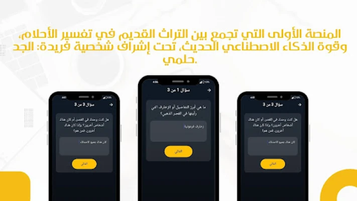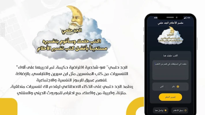اكتشف عالماً جديداً لفهم أحلامك مع تطبيق تفسير الأحلام: مفسر الجد حلمي. يوفر لك هذا الرفيق الذكي، الذي يحمل في طياته خلاصة آلاف التفاسير الموثوقة من أعلام كابن سيرين والنابلسي، بوابة سريعة ومجانية لفك رموز رؤياك. لم يعد تأويل الأحلام معضلة، فبمجرد وصف ما رأيته في منامك وتحديد جنسك، يتولى الجد حلمي مهمة تزويدك بتفسير دقيق ومعمق خلال لحظات، مستعيناً بخبرة عريقة وقوة الذكاء الاصطناعي.