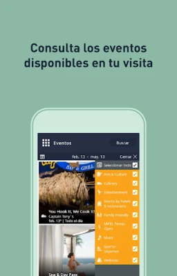 استكشف سحر Los Cabos كالمحليين مع دليلك الشخصي المتكامل. نقدم لك تجربة فريدة مصممة خصيصًا لتطلعاتك، حيث يمكنك تصفح مجموعة واسعة من الخدمات والمواقع الجذابة في المنطقة. بمجرد تسجيل الدخول، ستحظى بفرصة حفظ أماكن أحلامك في "خطتي" الشخصية، ولن يفوتك أي حدث بفضل الإشعارات الفورية حول الفعاليات والأنشطة المرتقبة. تجول في الواجهة التفاعلية "Los Cabos 360" لتشاهد المناظر الطبيعية الخلابة وتتعرف على الأحداث الكبرى مثل مهرجان الجاز وعروض التنس الدولية والمهرجان السينمائي العالمي، مع توفير جميع تفاصيل الاتصال والمواقع الرسمية لكل نقطة اهتمام.
